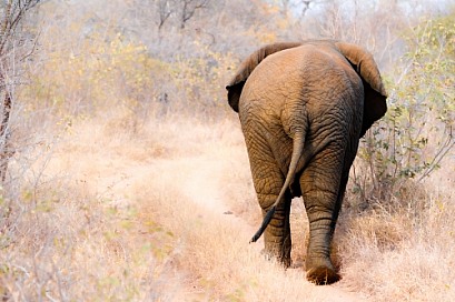 View from behind, strolling elephant