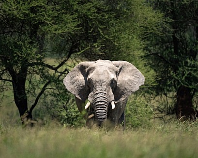 Large African Elephant coming out of the trees