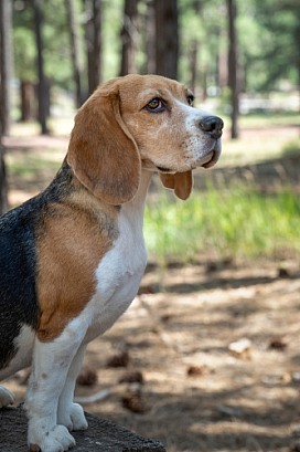 Profile portrait of a beagle