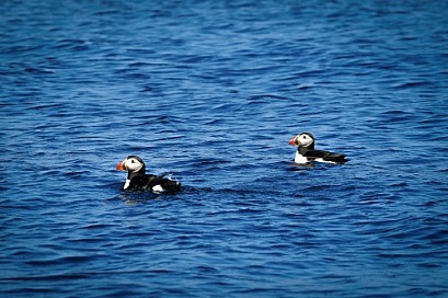 Two Puffins Swimming in the ocean