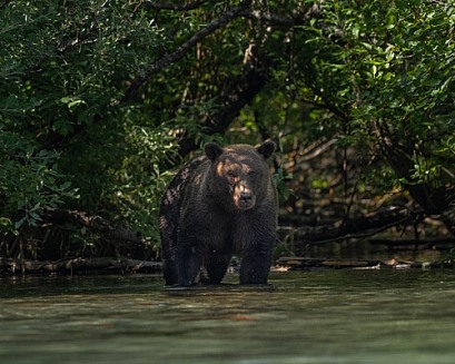Male bear coming out of the brush to fish