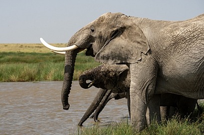 Herd of elephants drinking water