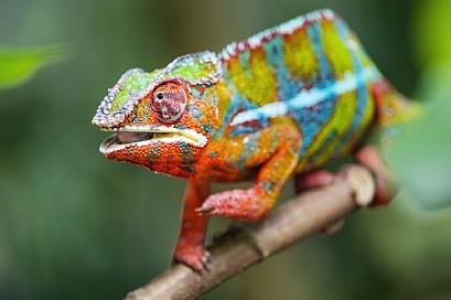 Colorful chameleon on branch