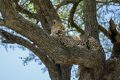 Profile of a leopard in a tree