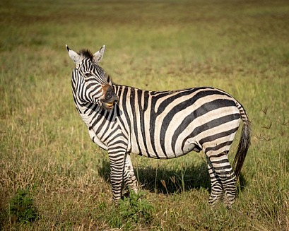 Male zebra scenting females in the meadow