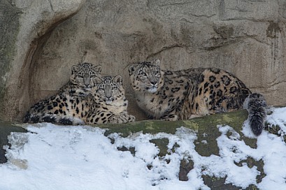 Snow Leopard with cubs in the Snow