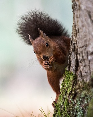 Red Squirrel on Tree Trunk