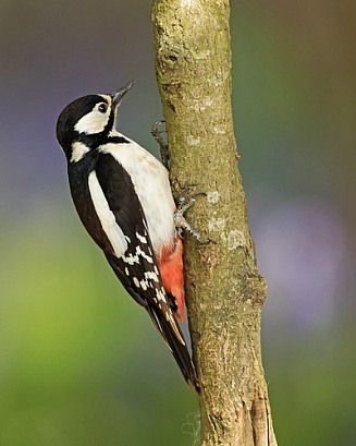 Great Spotted Woodpecker (female) in Bluebells