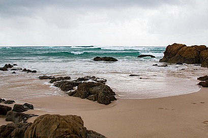 Waves crashing against rocks.