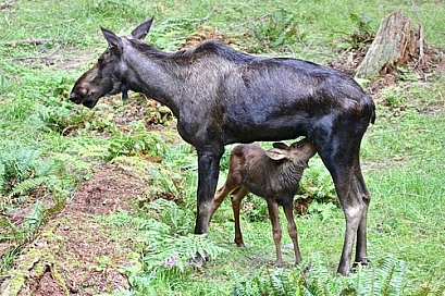 Moose, cow and calf