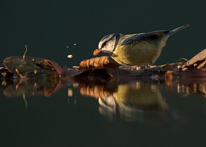 Reflected Blue Tit with Nut