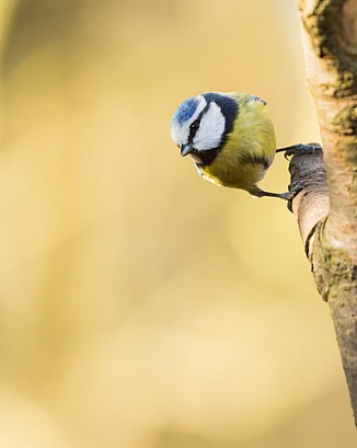 Blue Tit on Tree Trunk