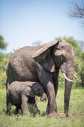 African Elephant With Calf (wild)