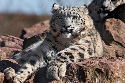 Young Snow Leopard Lying On Rocks