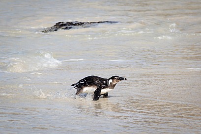Penguin coming out of the water