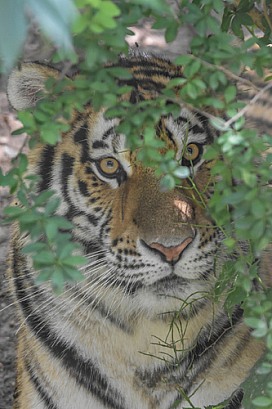 Amur Tiger hiding in bush