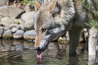 Grey Wolf Drinking