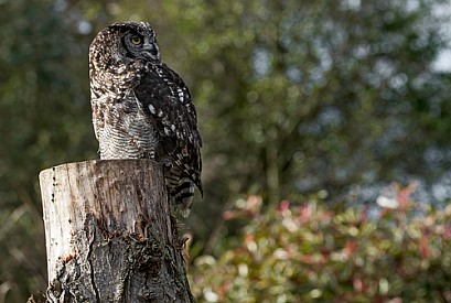 African Spotted Eagle Owl On Stump In Natural Surroundings