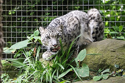 Snow Leopard Crouching Facing Forward
