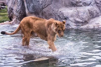 Lion wading through a Pool