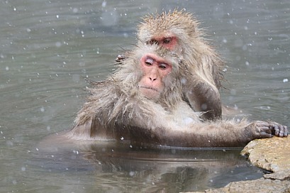 Snow monkey in hot spring