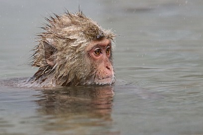 Snow monkey in hot spring