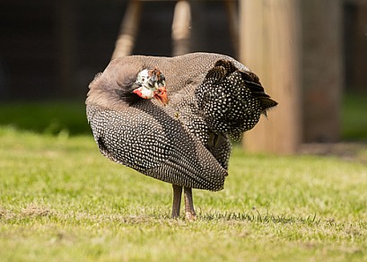 Guinea Fowl Preening