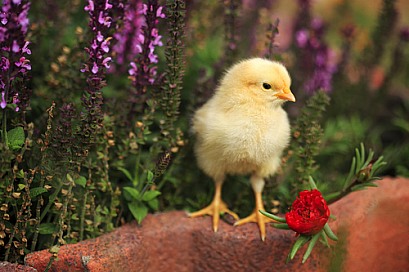Yellow Chick and Flowers