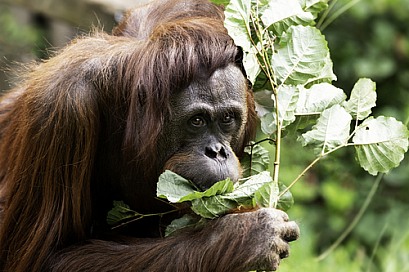 Bornean Orangutan Foraging Leaves