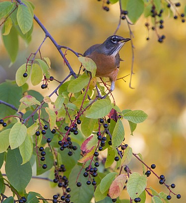 American Robin in the Chokecherry Tree