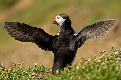 Atlantic Puffin Stretching with Sand Eels