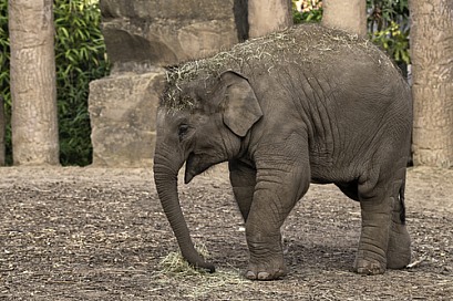 Asiatic Elephant Calf Full Body Side Shot