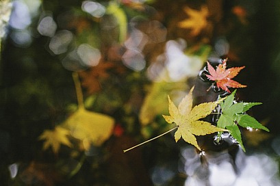 Red, yellow and green autumn leaves