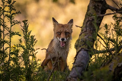 Red fox in the dunes on a summer evening