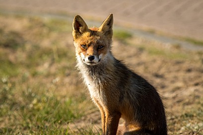 Red fox in the dunes on a summer evening