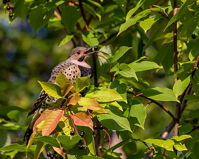 Yellow-shafted Northern Flicker Eating Chokecherries