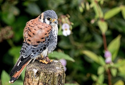American Kestrel Full Body On Tree Stump