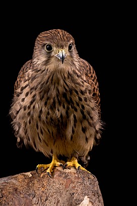 European Kestrel Portrait Full Body Black Background