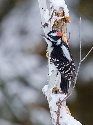 Male Downy Woodpecker perched on a tree