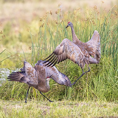 Sandhill Crane Dancing in a Field