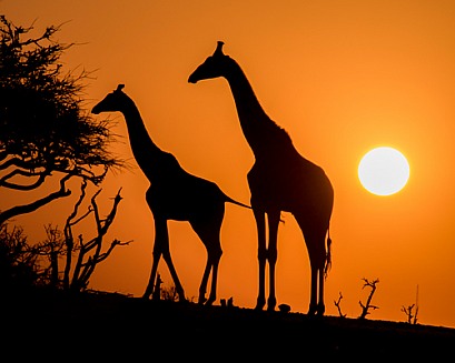 Two Giraffe Silhouettes at Sunset