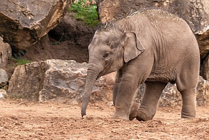 Asian Elephant Calf Full Body Walking
