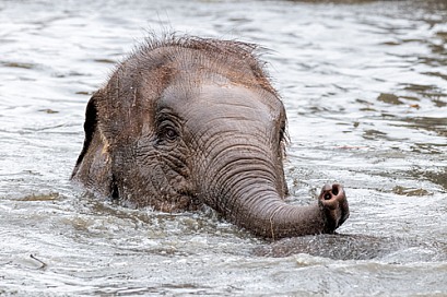 Asian Elephant Calf In Water