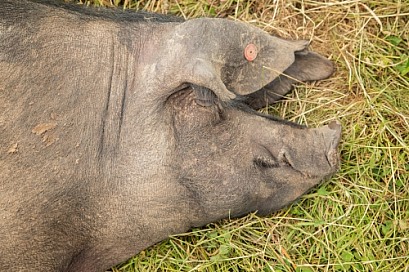 Rare Large Black Sow Sleeping
