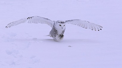 Snowy Owl Hunting a Rodent