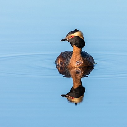 Horned Grebe in a calm lake
