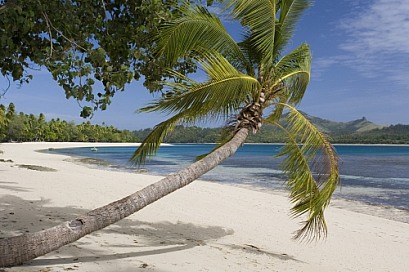 Tropical beach and leaning palm tree - Fiji