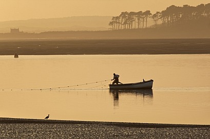 Fisherman hauling in his nets - Caernarfon - Wales