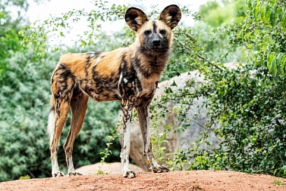 African Wild Dog Full Body Standing Upright
