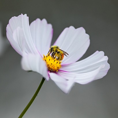 Honey Bee Gathering Pollen On A Cosmos Flower